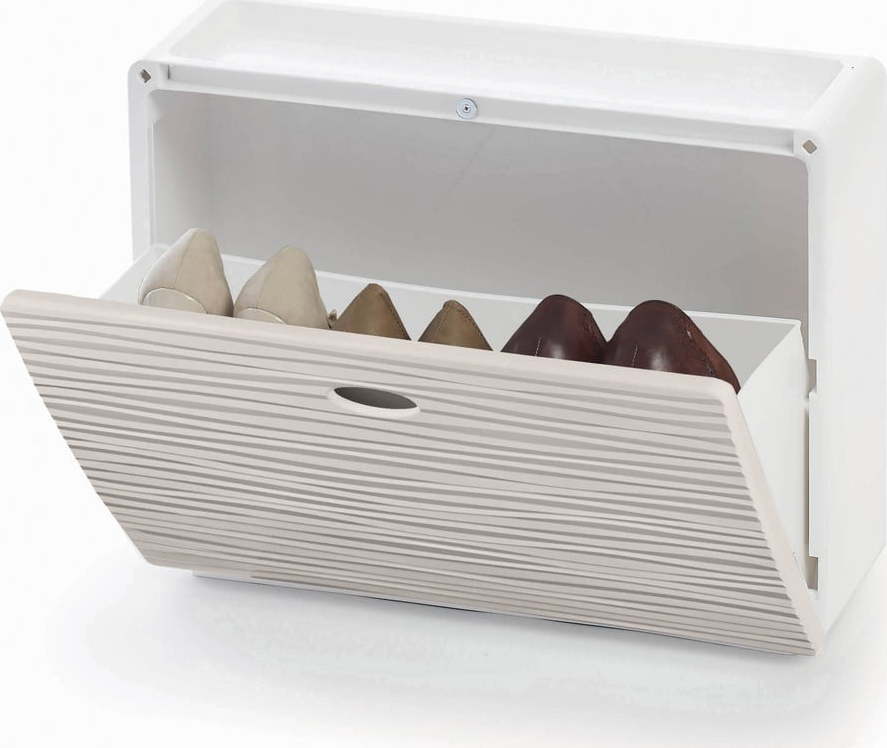Další informace k produktu: Bílo-béžový plastový výklopný botník Mono Wave – Domopak