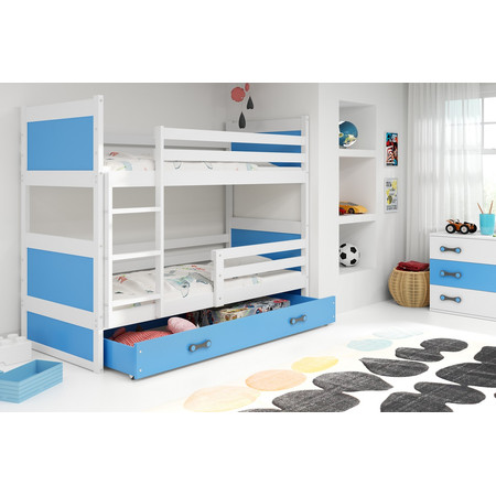 Exkluzivní Dětská patrová postel RICO 200x90 cm Modrá Bílá pocházející od značky Signal - tento produkt doručujeme ve slevové akci za 14279 Kč. Ceny a dodací lhůty tlačíme stále dolů. Jsme si jistí, že toto ocení nejeden zákazník.