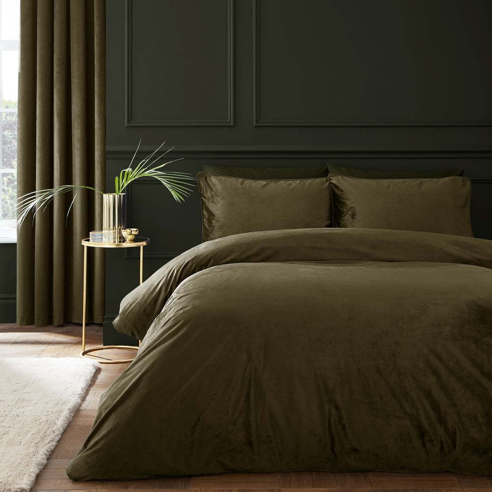 Khaki sametové povlečení na dvoulůžko 200x200 cm Kingsley – Catherine Lansfield