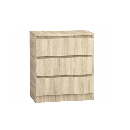 Komoda 90/3 je vyrobena z kvalitních materiálů. Univerzální vzhled splní očekávání všech, kteří oceňují kombinaci jednoduchosti a elegance. Bezúchytková čela zásuvek zajištují pohodlné používání, a zdůrazňují modernistický charakter interiéru. Údržba: Povrch nábytku otírejte vlhčeným hadříkem. Vyhněte se použití chemikálií.
