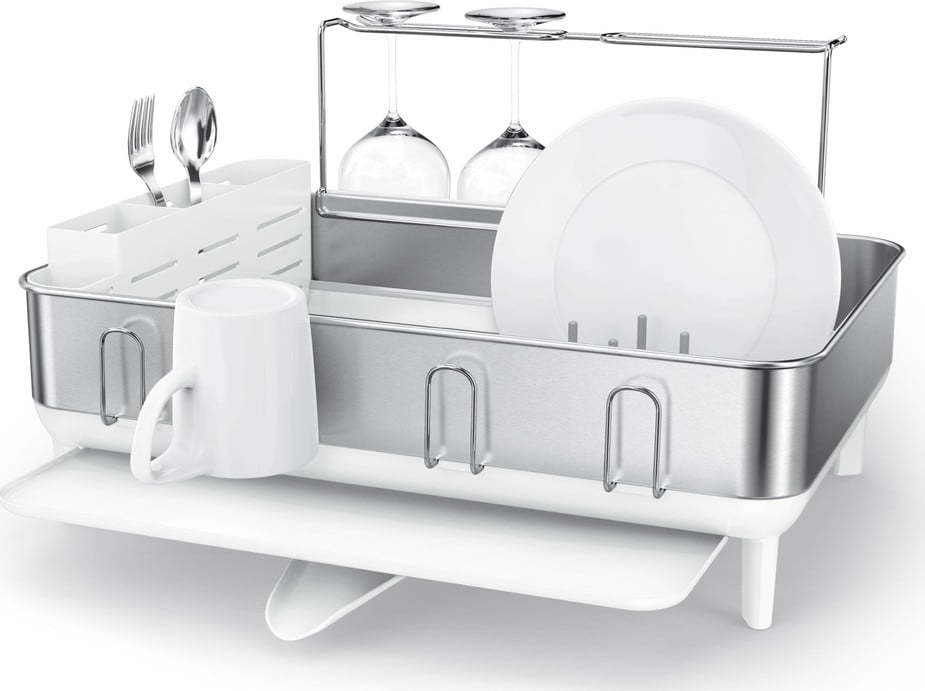 Nepořádek v kuchyni není příjemný, nicméně občas nevyhnutelný - přiznejme si to. Avšak od toho je tady značka simplehuman a tento nerezový odkapávač nádobí, který se svým praktickým tvarem vejde i přímo do dřezu.