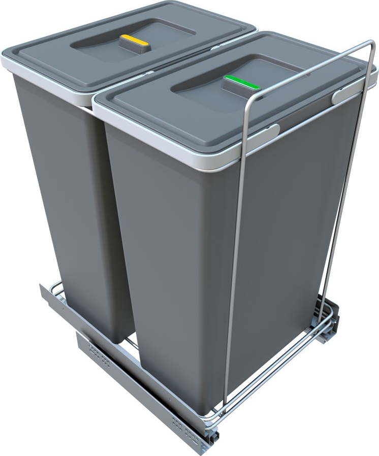 Základem je pevný rám z chromované oceli a výsuvný systém s tichým chodem a měkkými dorazy. Koše se vysouvají z pevně zabudovaných pojezdů ve skříňce po otevření dvířek a vytahování je plné. Každý koš je vybaven víkem a každé víko lze barevně rozlišit pomocí samolepících štítků, které jsou součástí balení. Plastové nádoby jsou vyrobeny z kvalitního, plně recyklovatelného materiál. Stejně tak rám koše, který je vyroben z chromované oceli. Ložiska pojezdů pracují tiše a jsou bezúdržbové.