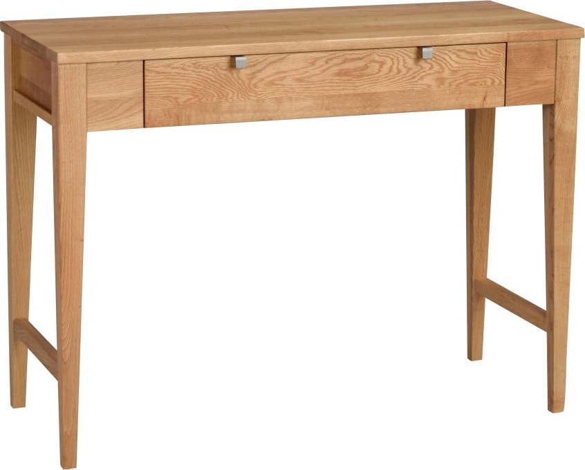 Konzolový stolek z masivního dubu se bude skvěle vyjímat v každé místnosti. Jako odkládací stolek například v koupelně, v předsíni stolek pod zrcadlem s miskou na klíče a další drobnosti, bez kterých z bytu nevycházíte, nebo v obýváku jako malý pracovní stůl. Je to jen na vás, tenhle fešák zastane tisíc a jednu funkci a přitom zůstává stále krásným.