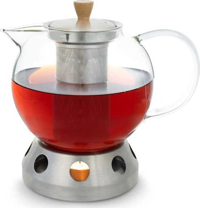 Pod víkem s dřevěným držákem se skrývá odnímatelné sítko z ušlechtilé oceli. Po požadované době přípravy čaje se vkládací sítko jednoduše vytáhne pomocí držadla a lehce vyčistí. Díky zhotovení ze žáruvzdorného a nerozbitného borosilikátového skla lze konvici na čaj položit na udržování tepla i na ohřívač.